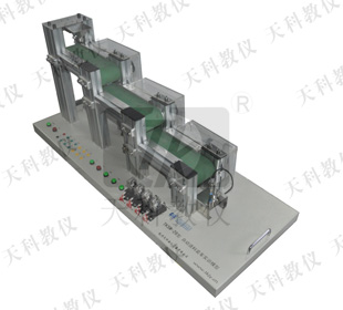 由漏斗上料装置、三级传送带、电磁铁、直流电机、电容传感器、故障开关、指示灯、模拟小车等组成,通过PLC编程,对电机、电磁铁进行较复杂的开关量控制、时序逻辑控制,完成自动上料过程。(数字输入4/输出6)